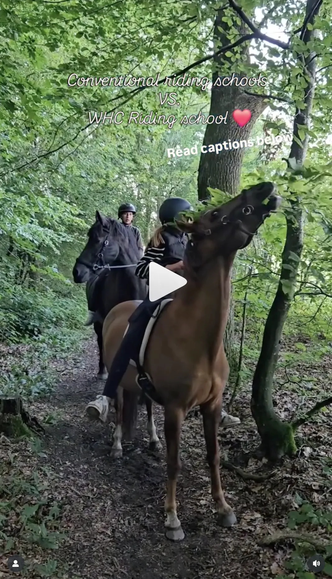At WHC, we also look at all aspects of the horse’s life and well-being — its physical condition, living environment, herd and social needs, turnout opportunities, feeding and daily care. True connection can only grow when the horse’s basic needs for health and welfare are respected.