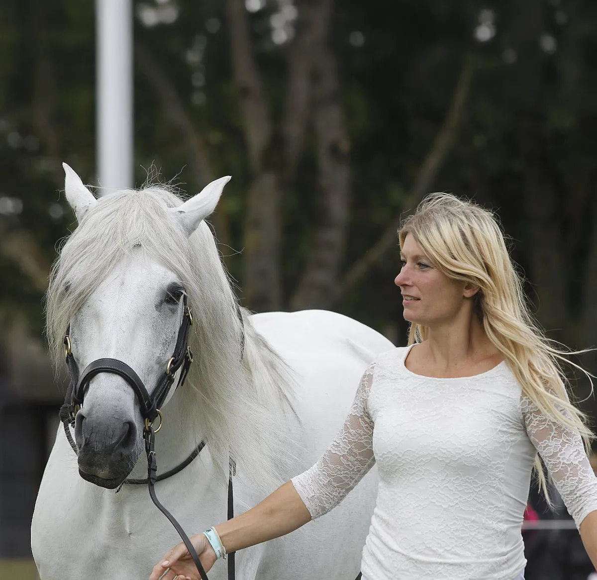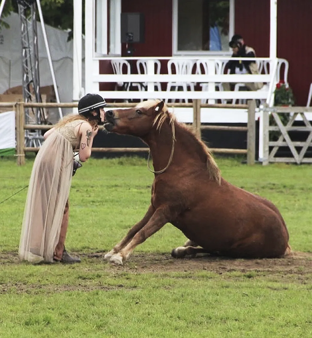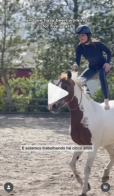 Heike and Daisy have been together since Daisy was 3 years old. They started traditional dressage competitions at grand prix level. But when Daisy became completely blind at the age of 18, they found another way to develop together and develop their communication, by taking off the equipment and showing that you don't need a bit, bridle, saddle and spurs to ride dressage on high level. Daisy loves the spotlight and showing off.