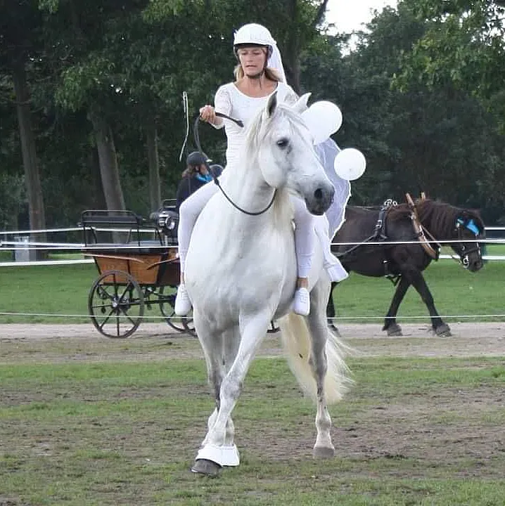 I also rode him during the show, using only a cordeo, with veils and balloons fluttering around us. He handled it all calmly, without being distracted by the many mares around us in every direction. He is forever a true friend of mine and I still go to visit him from time to time.