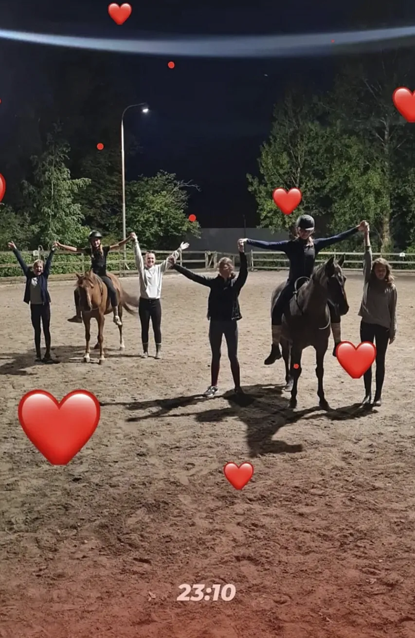 Throughout the week, we train in large groups, in smaller groups, and individually. We do groundwork, ride, some also practice jumping – and there is always a treasure hunt on horseback, ridden in small teams in a nearby forest, and always bitless.
