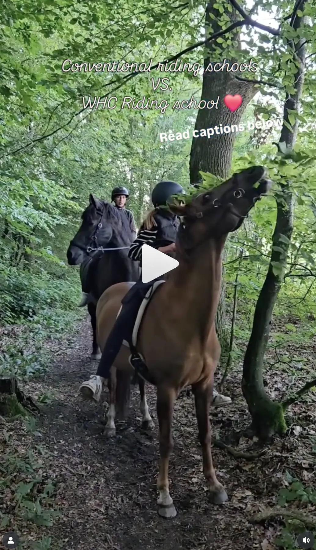 We do groundwork, ride, some also practice jumping – and there is always a treasure hunt on horseback, ridden in small teams in a nearby forest, and always bitless.